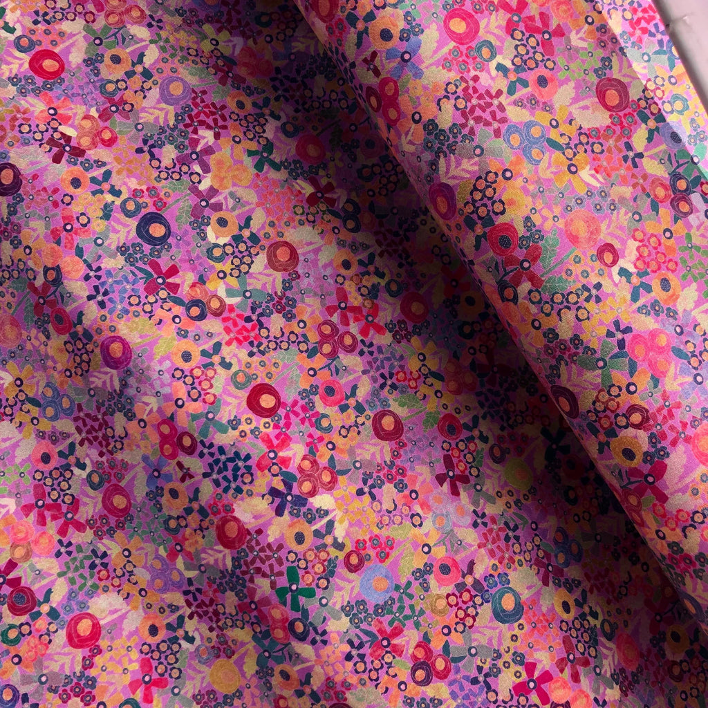 LARGE Catch All Zippered Pouch - A1 - Tiny Pink Flowers Fabric