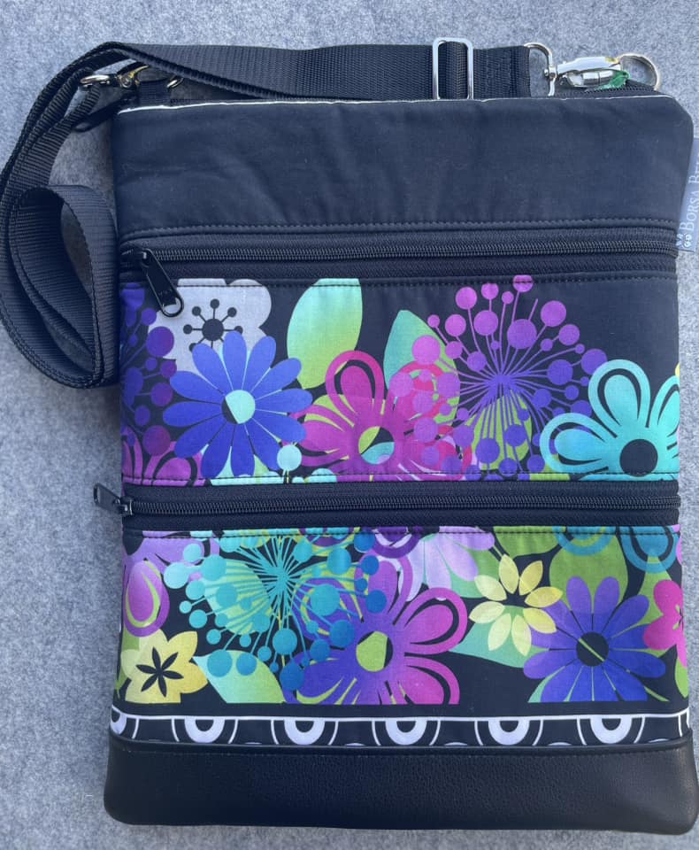 This is the middle size of my 3-zipper bags. Fabric placement will vary as each one is carefully handmade one at a time here in my Washington State studio.